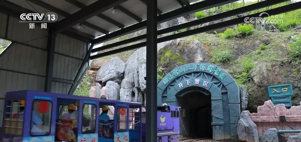 在湖南桂阳县宝山国家矿山公园,游客们戴好安全帽,在导游的指引下乘坐小火车到地下矿井探秘。在景区内,游客可游览地下矿井、博物馆、古钱币主题雕塑等多元消费场景。