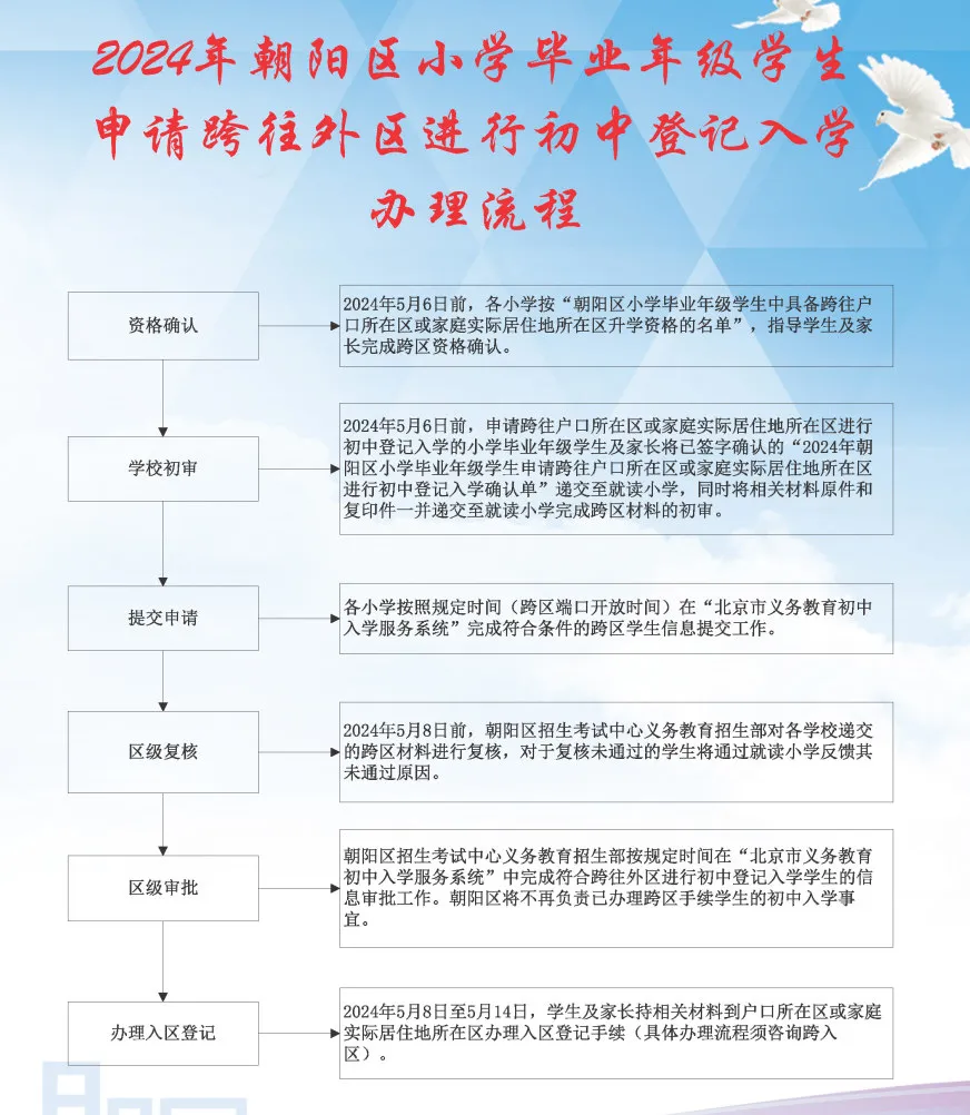 准备升入本市其他区初中的学生:需在5月6日-5月14日向原就读小学申请跨区小升初。5月8日-5月14日根据其他区要求完成确认手续,然后按照其他区要求升初中,不必在顺义区端口进行信息采集。