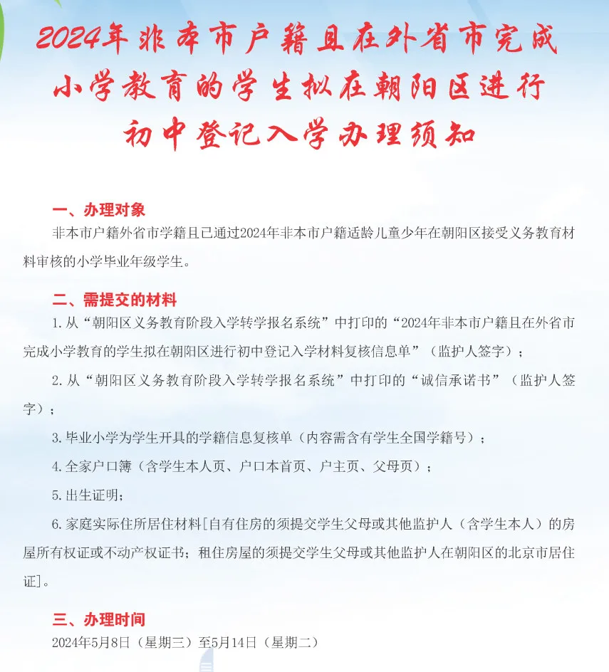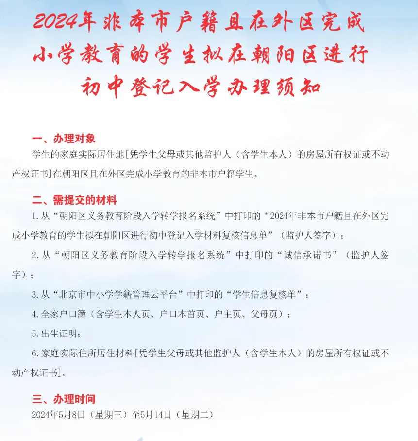 今日开始!北京启动小升初跨市、跨区入学办理工作