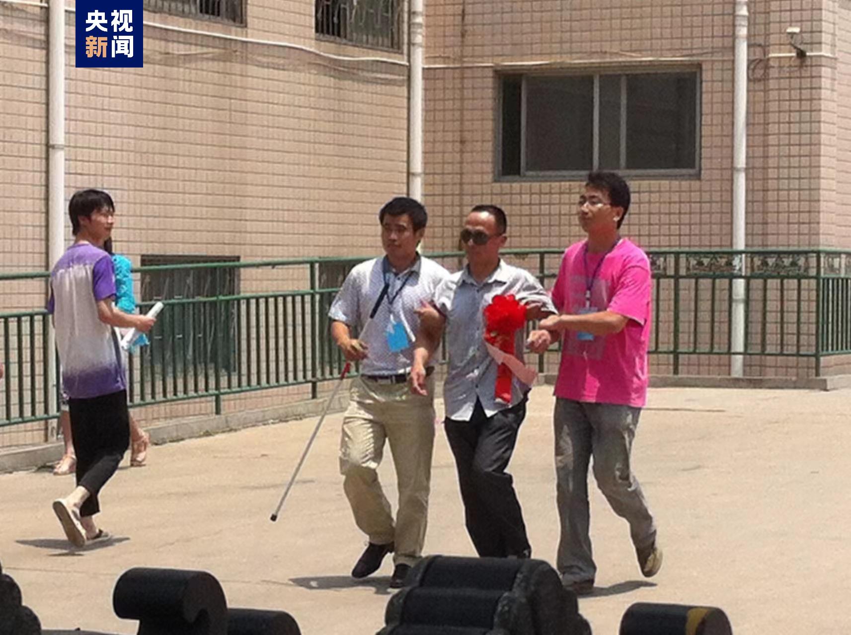 2014年盲人考生李金生走出考场(摄影高伟强)