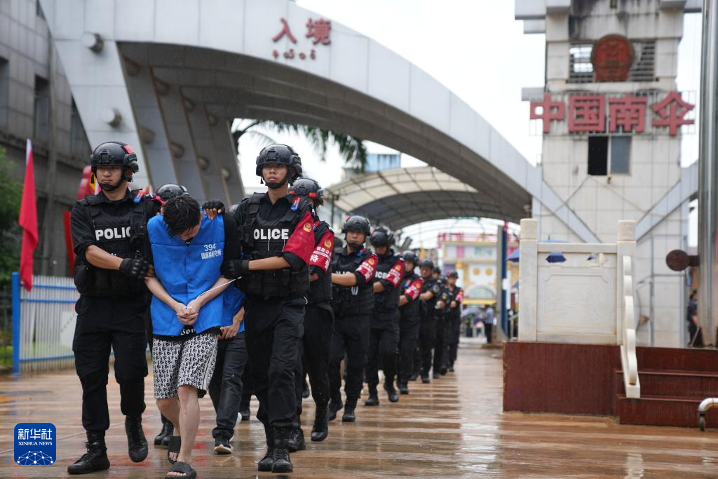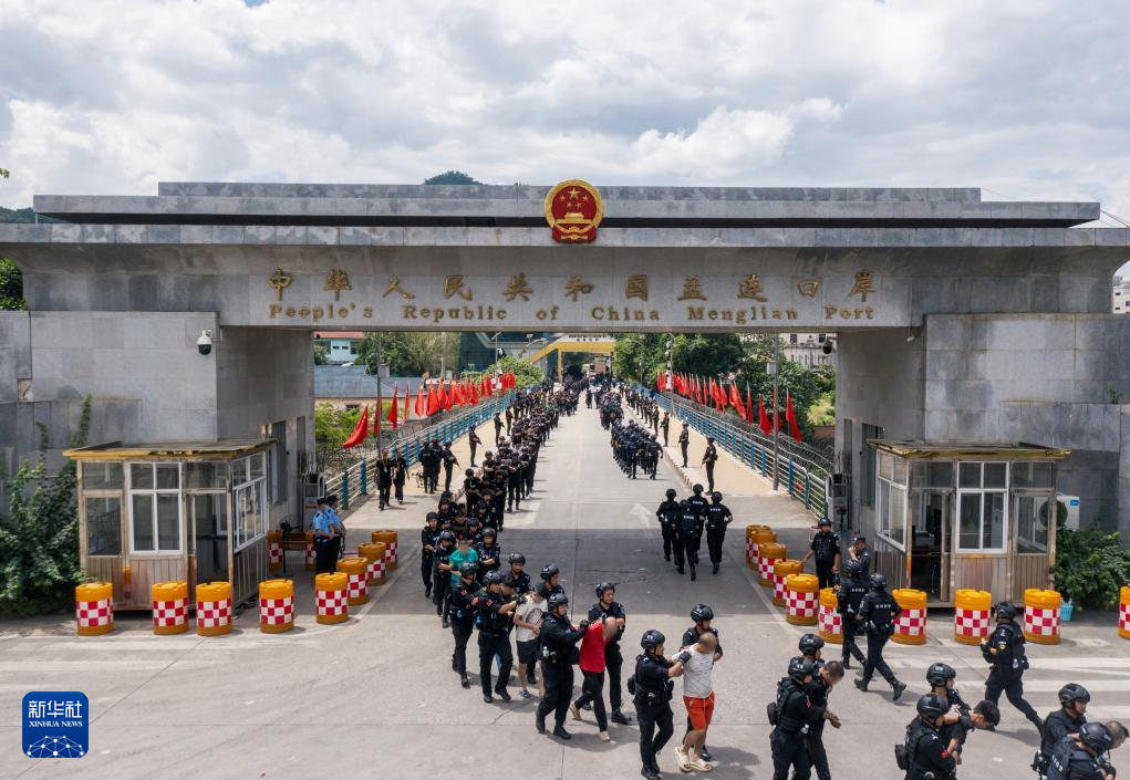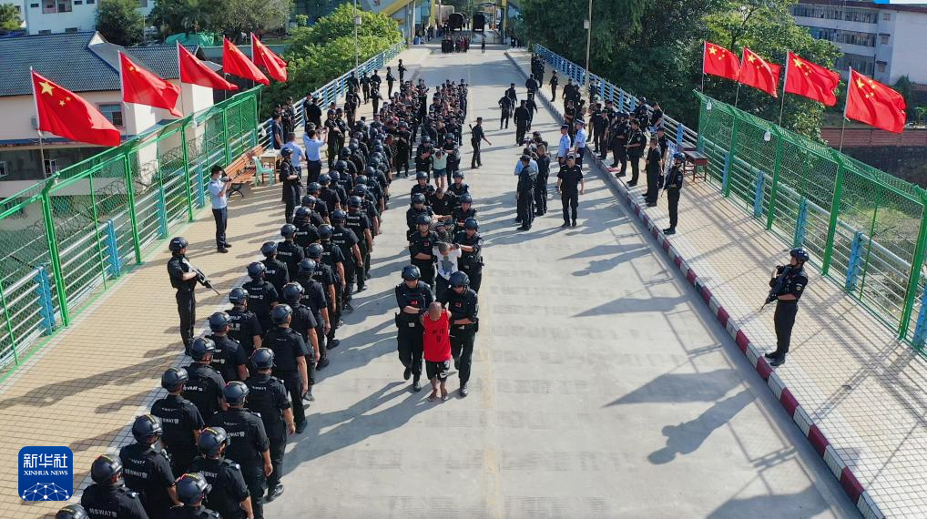 在公安部和云南省公安厅指挥部署下,普洱公安机关积极与缅甸相关地方执法部门开展边境警务合作,及时向其通报诈骗窝点和人员线索。2023年9月6日,缅甸相关地方执法部门开展抓捕行动,集中向我方移交涉诈犯罪嫌疑人1207名。这是2023年9月16日,在云南省孟连口岸,中国籍电信网络诈骗犯罪嫌疑人被移交我方。
