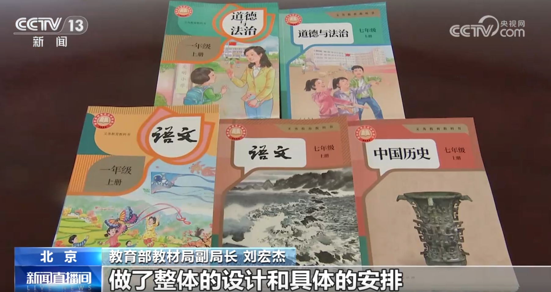 教育部教材局副局长刘宏杰介绍:“习近平新时代中国特色社会主义思想进教材做了整体的设计和具体的安排。另外一个变化,就是我们进一步突出了三种文化的育人功能。从中华优秀传统文化到革命文化到社会主义先进文化,怎么在教材里面更加体现出它的育人导向,体现出它的分量和含量来。还有一块儿变化,就是进一步强化了相关的重大主题教育的内容,比方说国家安全教育、法治教育、铸牢中华民族共同体意识教育等,以及国防教育、劳动教育、生命安全健康教育,这些都是为了增强我们教材育人的针对性。”