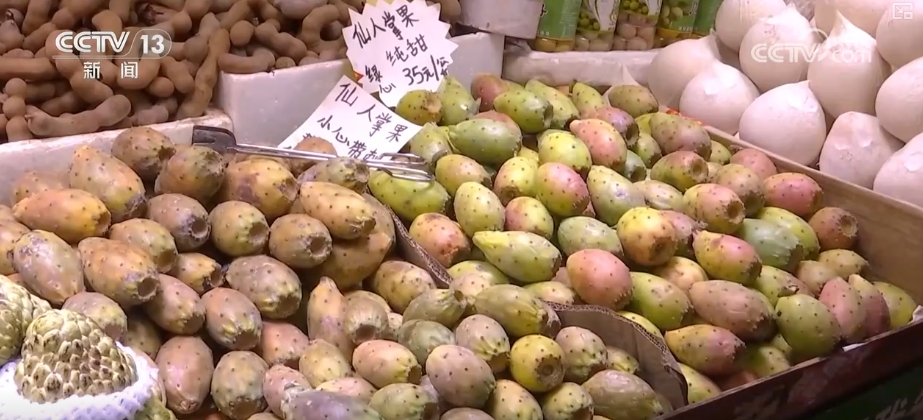 商户介绍,这种水果名叫八月瓜,俗称八月炸。因为它每年八月成熟,成熟后果皮会自然炸裂,露出里面的果肉。除了八月瓜,还有一种叫仙桃的,其实就是仙人掌结出来的果实,仙桃也是剥了皮就能吃。