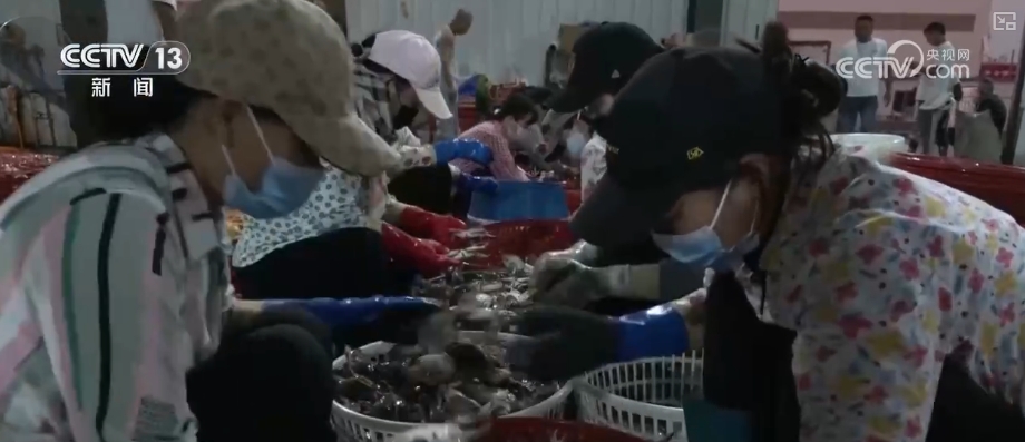 走进江苏连云港的这家大型海鲜销售市场,购买海鲜的市民络绎不绝,梭子蟹、东方虾、皮皮虾、帝王蟹等各种海鲜应有尽有。商户们忙着挑选海鲜、加冰、打包发货。