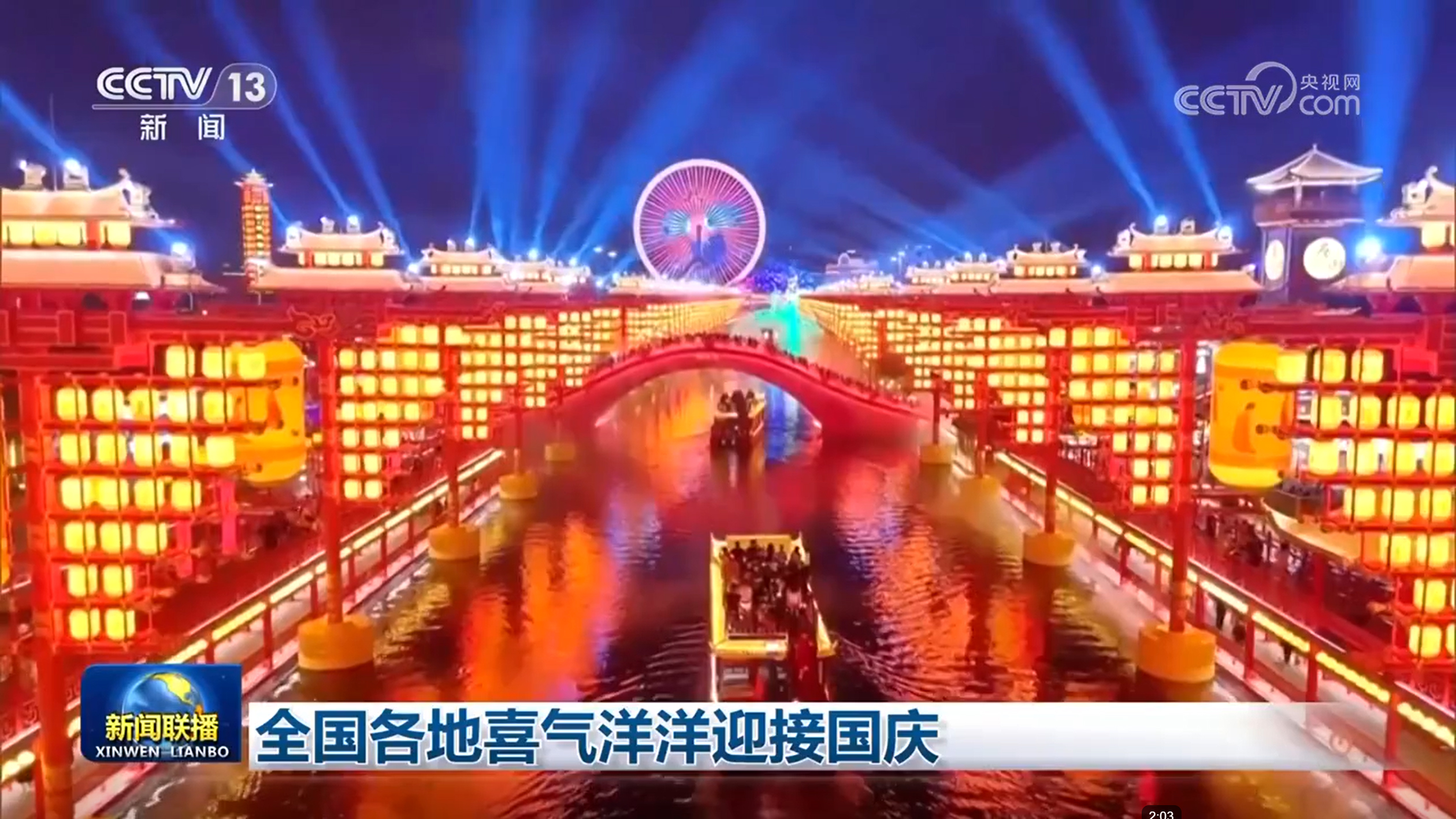 各地还用璀璨灯火迎接国庆。在天津,海河水波荡漾,两岸点点流光,人们乘船夜游,感受城市的灵动、节日的喜庆。在四川南充嘉陵江畔,主题灯光秀精彩上演。在陕西西安浐灞国际港,一栋栋建筑亮起灯光,变换出“万里共山河 家国共此时”等字样。在吉林长春南湖大桥,绚烂的灯光配合千变万化的喷泉,让人们沉醉其中。在河北唐山,水幕灯光点亮夜空,点燃观众的爱国情怀。