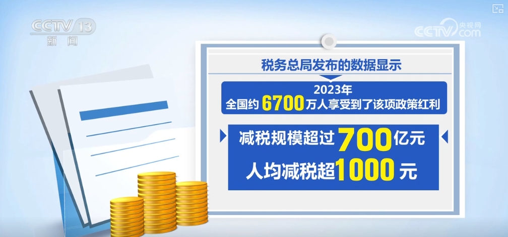 税务总局发布的数据显示,2023年,全国约6700万人享受到了该项政策红利。减税规模超过700亿元,人均减税超1000元。其中,子女教育、赡养老人和3岁以下婴幼儿照护减税分别约360亿元、290亿元和50亿元。