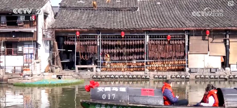 浙江绍兴柯桥的安昌古镇素有制作腊肠酱鸭的传统,腊月时节,这里的店铺挂满色泽诱人的酱货,醇厚的香气弥漫在空气中,吸引众多游客与本地居民前来选购。
