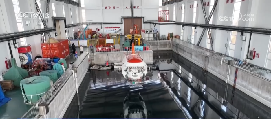 在国家深海基地管理中心的“蛟龙号”潜水器试验车间,记者手边的水池水深达到8米。目前,潜航员正在驾驶着“蛟龙号”下潜到水池中,对改造升级的推进器、锂电池组等关键设备进行全流程试验,从而检验系统的稳定性。这也是蛟龙号升级改造后进行的第四次水池试验。