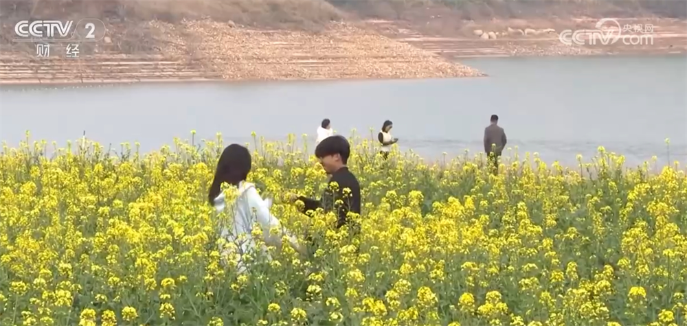 在河源市的一个花田里,百亩油菜花也悄然绽放,吸引不少游客前来观赏,感受春天的无限魅力。同时,便捷的交通也催生了“高铁赏花游”,不仅带动了当地餐饮、住宿等产业的发展,也为当地的“春日经济”注入了新活力。