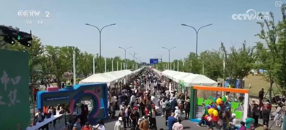 “五一”假期,江苏盐城亭湖区的鱼市口大集游人如织,数百个摊位沿大集两侧整齐排开,各类商品琳琅满目,游客们还可以体验当地的非遗漆扇制作工艺。