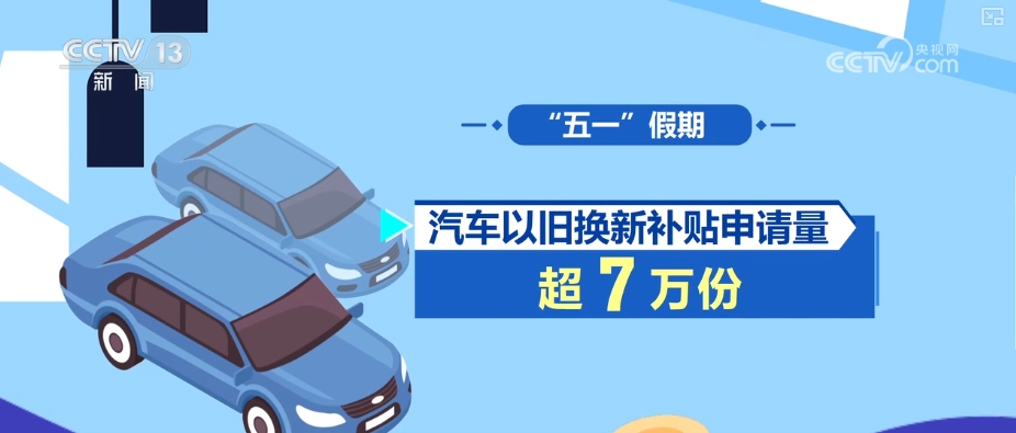 “五一”假期,汽车以旧换新补贴申请量超7万份;消费者购买12大类家电以旧换新产品442万台,购买手机、平板、智能手表(手环)购新补贴产品294万件,电动自行车售旧、购新均超30万辆。