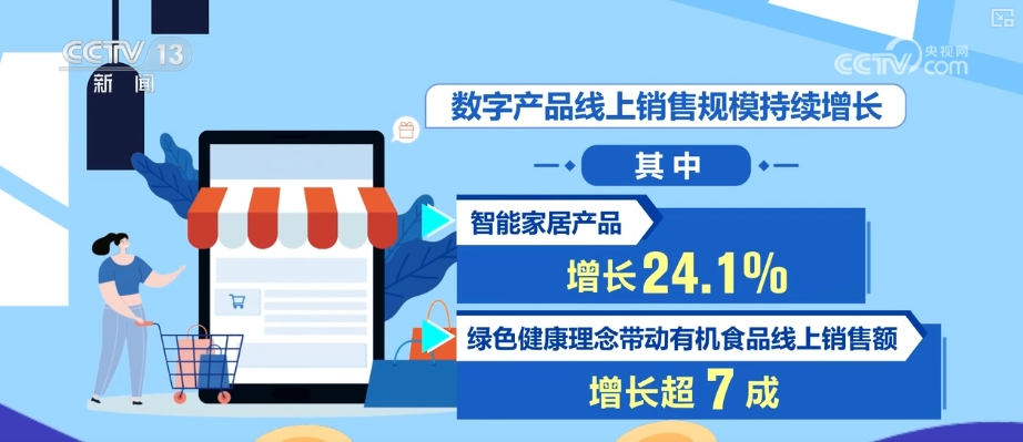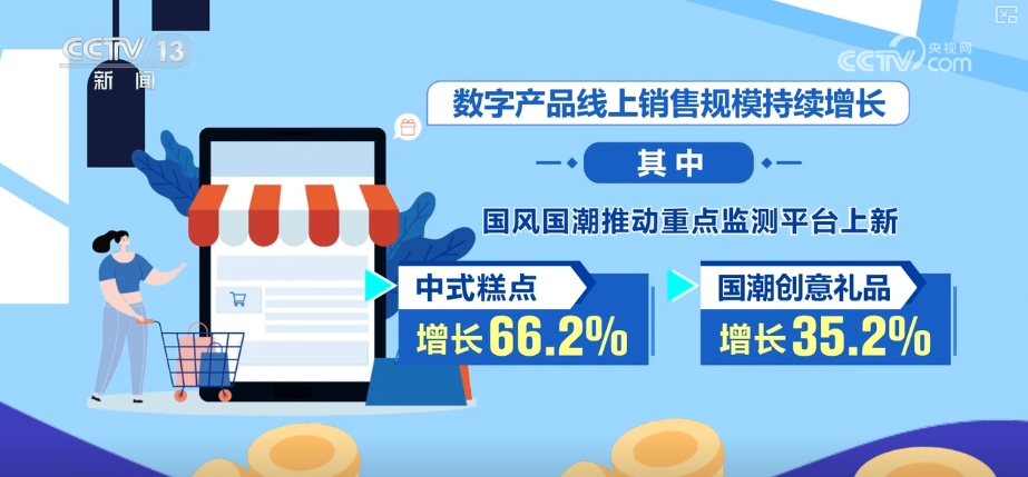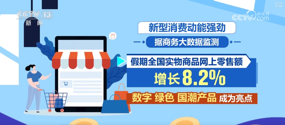 新型消费动能强劲。据商务大数据监测,假期全国实物商品网上零售额增长8.2%,数字、绿色、国潮产品成为亮点。数字产品线上销售规模持续增长,其中,智能家居产品增长24.1%。绿色健康理念带动有机食品线上销售额增长超七成,国风国潮推动重点监测平台上新中式糕点、国潮创意礼品增长66.2%和35.2%。