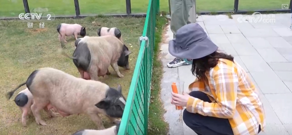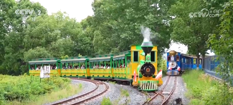 在浙江安吉的一家动物园里,游客乘坐着观光小火车在牧场中穿梭。火车沿线生活着盘羊、袋鼠、小香猪等动物,每经过一站,游客都可以下车互动。