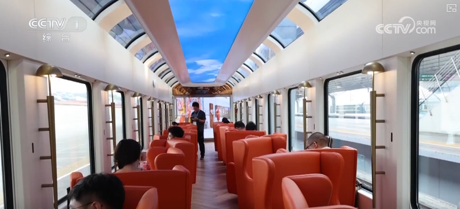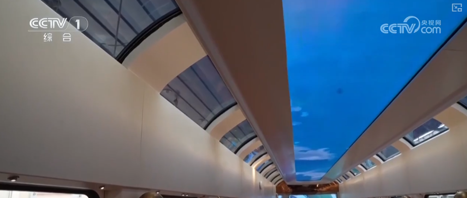国铁北京局客运部新闻发言人李燕介绍,观光车设置了一个科技的天幕,在车厢外还加装了摄像头,可以把车体窗外自然景观展现在天幕中。
