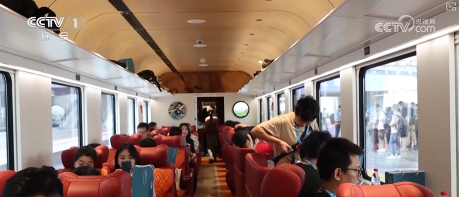 Y963次列车在投入运营前完成改造升级,将绿水青山与中国文化元素融入外皮涂装设计。车厢内部则打造成为“移动观景客厅”,让旅游从登上车厢的那一刻就开始。