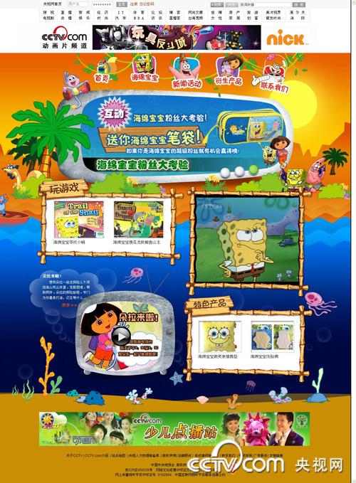 尼克中文官方网站不仅提供尼克少儿频道丰富的原创内容:如卡通节目、焦点人物、尼克少儿频道相关卡通人物的热点新闻和活动,还提供以卡通人物为主角的在线游戏及墙纸下载。此外,观众还可以随时随地重温《海绵宝宝》的精彩视频。
