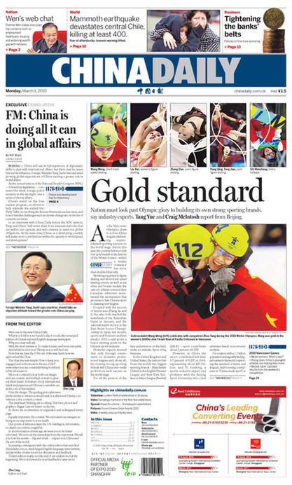 改版后的《中国日报》以“解读中国,点评世界”为报道主题,将打造与中国国际地位相称的世界一流英文媒体作为目标。旗下的《中国日报(美国版)》和《中国日报(香港版)》将一同改版。中国日报总编辑朱灵表示,日益繁荣昌盛的中国正吸引着越来越多的国际关注,即将召开的2010年中国“两会”尤其为世人所瞩目。作为被外媒转引最多的中国报纸,《中国日报》在“两会”召开前夕全面改版,并成立了历史上规模最大的报道组采访报道“两会”,就是要借此时机更加全面、客观地回应海外受众关切,更好地向世界说明中国。