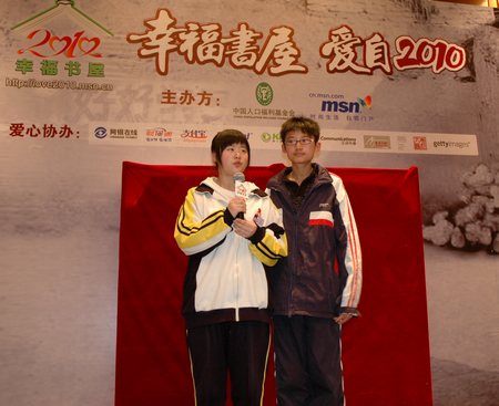 靠拾卖废品建立起公共图书室并入选2009年感动吉林十大人物的王昱文和王昱权姐弟也以“爱心大使”的身份参加了“幸福书屋”的启动仪式。“我们办的公共图书室很受同学们的欢迎,相信2000个幸福书屋在那些贫困地区建成后,一定会让更多的小朋友们和我们一样享受到阅读的乐趣,学习到很多有用的知识”。王昱文表达了自己对于本次活动的支持。