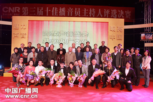 中央台第三届十佳播音员主持人与台领导、评委合影(摄影:中广网涂傲)