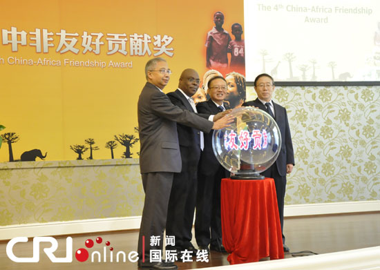 国际在线报道(记者 张斯路):由中国非洲人民友好协会和中国国际广播电台共同主办的“第四届中非友好贡献奖”评选活动于19日在北京举行了官网启动新闻发布会。中国非洲人民友好协会副会长冯佐库、中国国际广播电台副总编辑马为公和非洲驻华使团长、多哥驻华大使诺拉纳·塔·阿马等中非嘉宾出席了发布会。