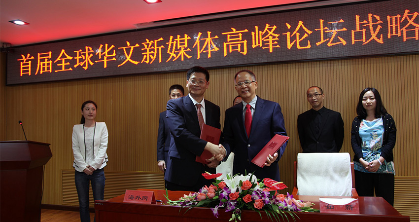 摘要:由人民日报海外版主办、海外网承办的“首届全球华文新媒体高峰论坛战略合作”9月26日在北京举行签约仪式,将于2015年3月底举行。