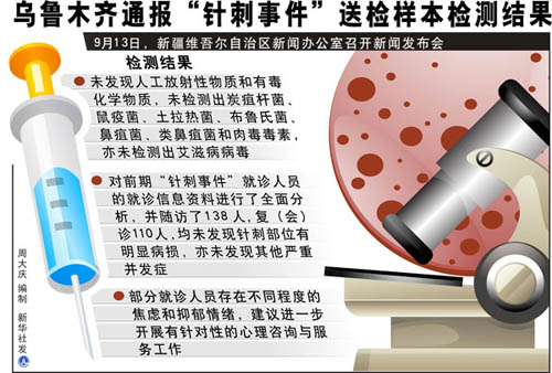 图表:乌鲁木齐通报“针刺事件”送检样本检测结果 新华社发