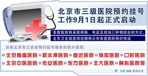 图表:北京市三级医院预约挂号工作9月1日起正式启动 新华社发
