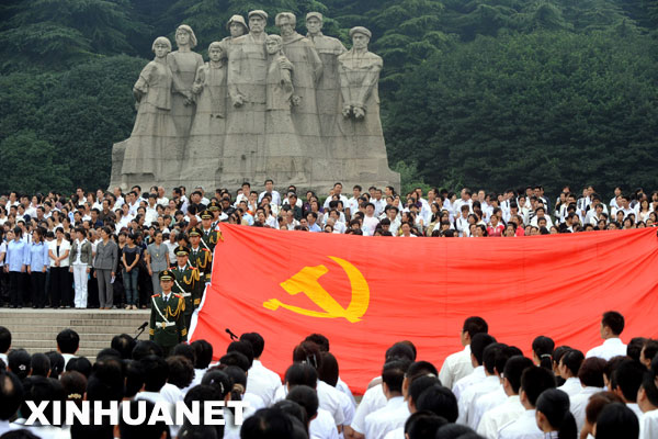 9月12日,新当选的社区党组织书记面对革命先烈、面对党旗、面对选择了自己的党员和群众进行集体宣誓。当日,南京举行公推直选社区党组织书记任职承诺大会,363名在公推直选中新当选的社区党组织书记在南京雨花台烈士陵园进行集体宣誓,并作出任职承诺。 新华社记者 韩瑜庆 摄