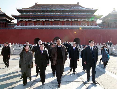 11月17日,正在中国进行国事访问的美国总统奥巴马参观北京故宫。新华社记者 庞兴雷 摄
