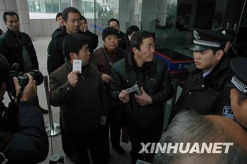 11月19日,被害人家属等人手持身份证要求进入法庭旁听被拒绝。新华社记者 程士华 摄