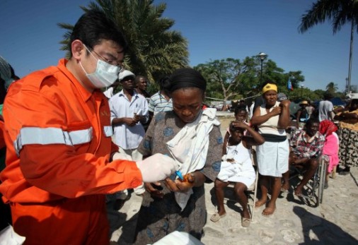 记者:抵达海地后,中国国际救援队连续奋战。到19号,他们已经挖出包括联合国驻海地最高官员赫迪·安纳比等7名外国人和8位中国维和警察在内的15具死难者遗体。在残垣断壁之间,中国医疗队开放小型流动医院,第一个搭起简易医疗所,救治伤员、消毒防疫。日前,中国国际救援队受到联合国秘书长潘基文的高度评价。