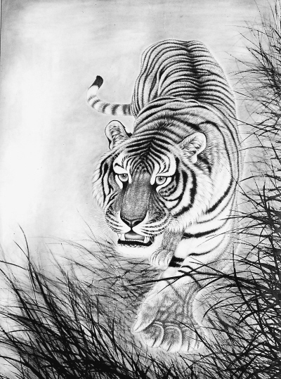 农民创作的工笔画老虎图。河南省商丘市民权县王公庄村被称为“中国画虎第一村”,当地村民每年春节前都会创作各种各样的虎画。沙浪摄