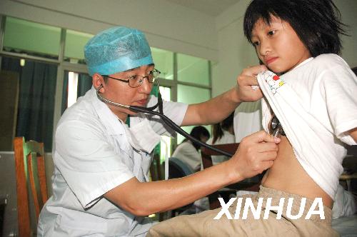 资料图片:2008年10月10日,一名患病儿童在进行手术前体检。当日,广州启动“爱心救助,托起希望”救治百名特困家庭重症儿童行动,由广州福利彩票公益金筹集300万元资金,资助100名低保、低收入困难家庭中患重症病的儿童进行救治。 新华社记者赖少芬摄