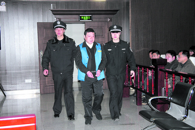 邓慈常在法警的押解下走向受审席。胡淋伟 摄
