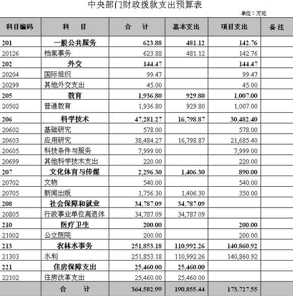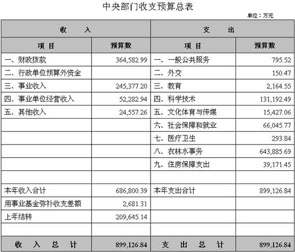 水利部2010年收支预算总表