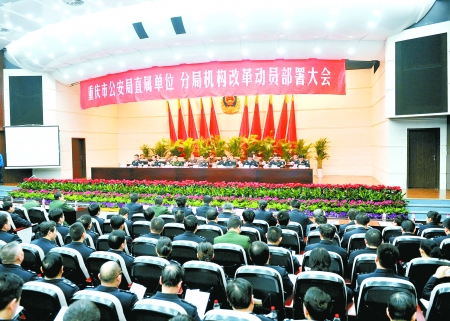 重庆市公安局直属单位分局机构改革动员部署大会现场。重庆市公安局供图