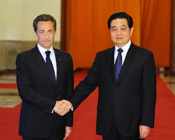 新华网北京4月28日电(记者李忠发)国家主席胡锦涛28日下午在人民大会堂同法国总统萨科齐举行会谈。两国元首就在当前国际形势下发展中法关系、中欧关系深入交换意见,达成许多重要共识。