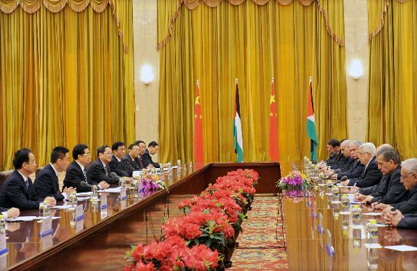 胡锦涛同巴勒斯坦国总统阿巴斯举行会谈