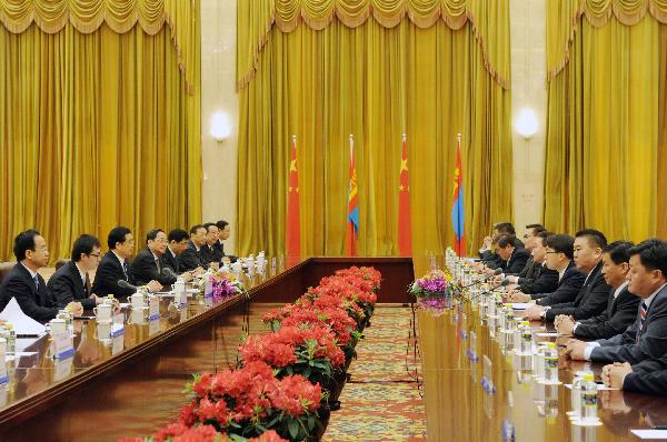 胡锦涛同蒙古总统额勒贝格道尔吉举行会谈