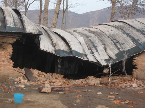火灾过后房屋的部分结构已经坍塌(5月4日摄)。5月3日22时30分左右,位于呼和浩特市赛罕区榆林镇二道河村的一处铁路隧道施工人员住所发生火灾,据初步核实,火灾已造成10人死亡,另有重度和轻度烧伤人员14名。新华社发(任会斌摄)