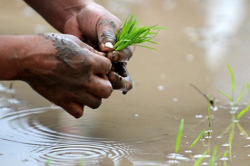 贵州省安顺市西秀区两所村村民在水田里插秧(5月3日摄)。近期,贵州降雨明显,旱区旱情缓解,贵州省气象局4日宣布解除干旱橙色预警信号。据贵州省气象台通报,在4月30日8时至5月4日8时的降雨过程中,贵州西南部地区降雨明显,累计雨量有23县(市)在25毫米以上,镇宁、紫云、望谟、普安4县达50毫米以上。有1315个乡镇出现降雨,有353个累计雨量在25毫米以上,94个在50毫米以上,西南部重旱地区旱情得到缓解。 新华社记者 刘续 摄