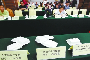 庭审结束后,原告方详细介绍了对劣质一次性餐盒的分解实验及鉴定过程。记者 孙戉摄