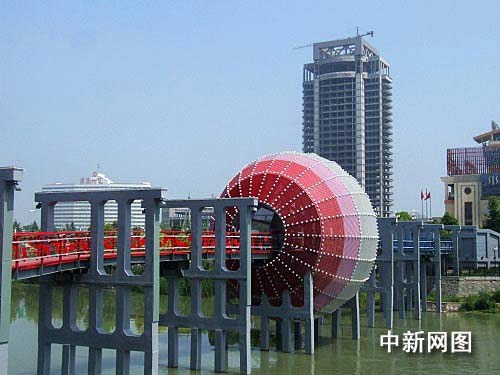 淮安南北分界标志:南面用红色象征南方亚热带气候特征。图片来源:中新网