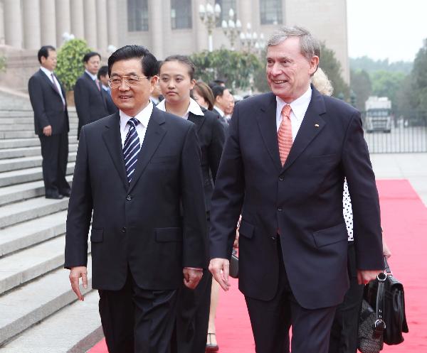 5月17日,中国国家主席胡锦涛在北京人民大会堂举行仪式,欢迎德国总统克勒访华。 新华社记者 刘卫兵 摄