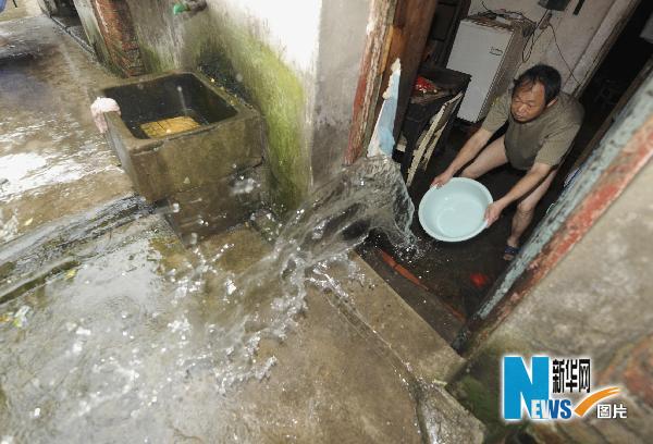 5月18日,南昌市利字街一名居民清除屋内积水。受连日暴雨影响,南昌市城区多处发生严重内涝。 新华社发