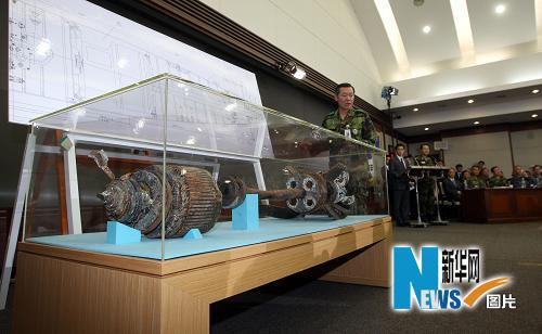 5月20日,韩国“天安”号军民联合调查团成员展示在事故海域搜集到的证据。当日,韩国“天安”号军民联合调查团公布正式调查结果称,综合各种证据来看,韩国海军的“天安”号警戒舰是遭受朝鲜小型潜水艇发射的鱼雷攻击而沉没的。新华社/联合通讯社