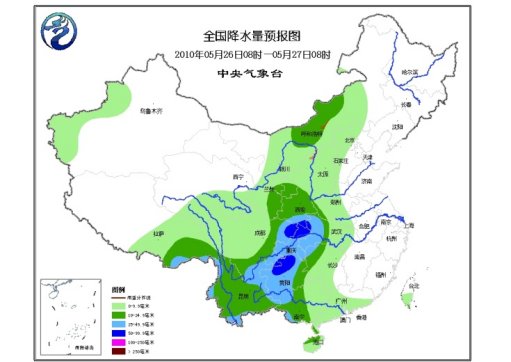 青海玉树地震灾区预报: 26日白天:玉树有中雨。5月26日夜间至27日白天:玉树有阵雨。