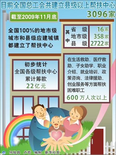 图表:目前全国总工会共建立县级以上帮扶中心3096家