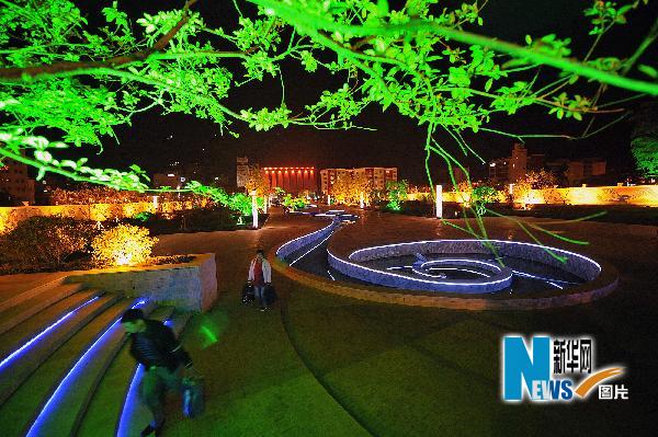 5月11日,汶川中轴线广场夜景。 “5·12”汶川地震过去两年了,汶川新城重建初见轮廓,整个县城焕发着勃勃生机,夜色迷人。 新华社记者 何俊昌 摄