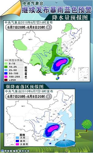 中央气象台6月7日18时继续发布暴雨蓝色预警: